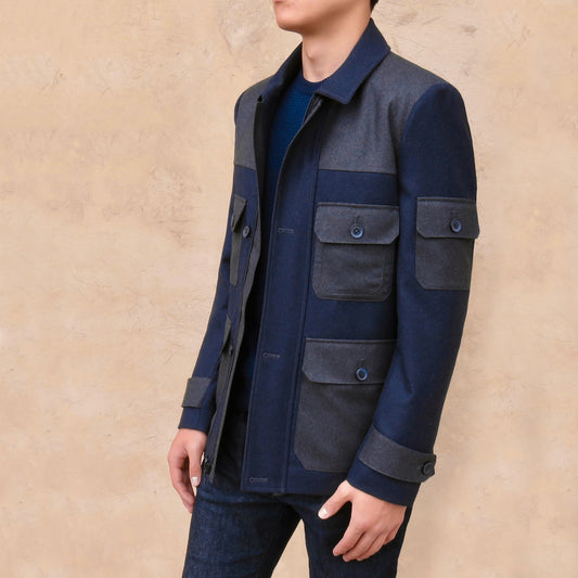 Este es nuestro pañuelo de bolsillo Han-Han (半々: significa "mitad y mitad" en japonés). La combinación de 2 telas te permite crear muchas formas de doblarlo para darle un buen acento a tu traje o estilo blazer.