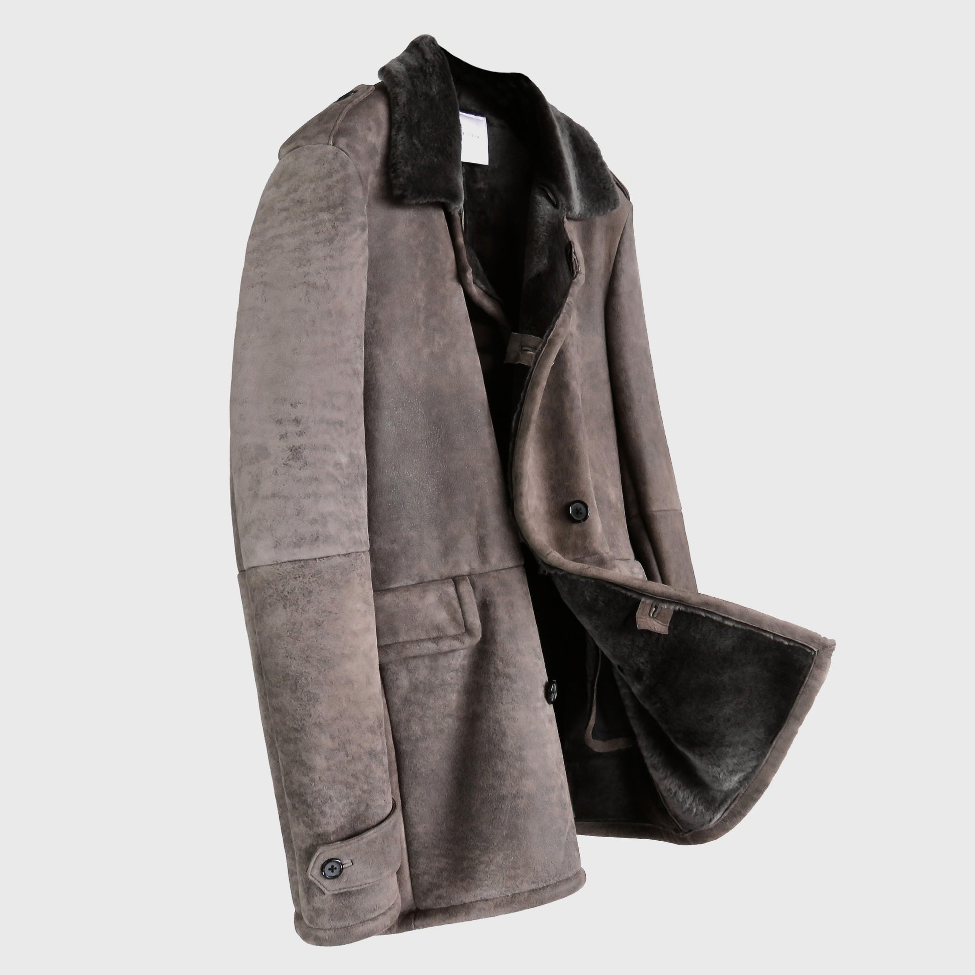 Este peacoat masculino está confeccionado en lujosa mouton (piel de oveja), que ofrece una suavidad excepcional, aislamiento natural y una calidez envolvente. Su textura es rica y aterciopelada, elevando la clásica silueta naval mediante una materialidad sofisticada.